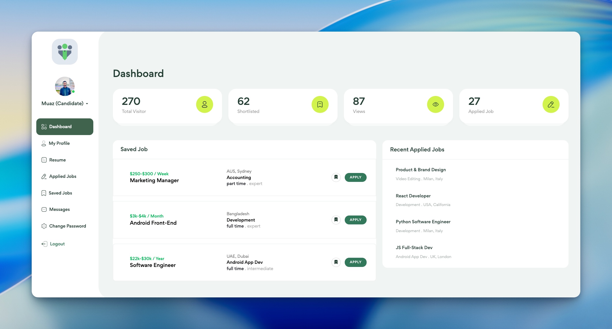 Get a quick snapshot of your activity with real-time statistics, including profile views, visitors, applied jobs, and shortlisted opportunities, helping you stay informed and make smarter decisions throughout your job search journey.