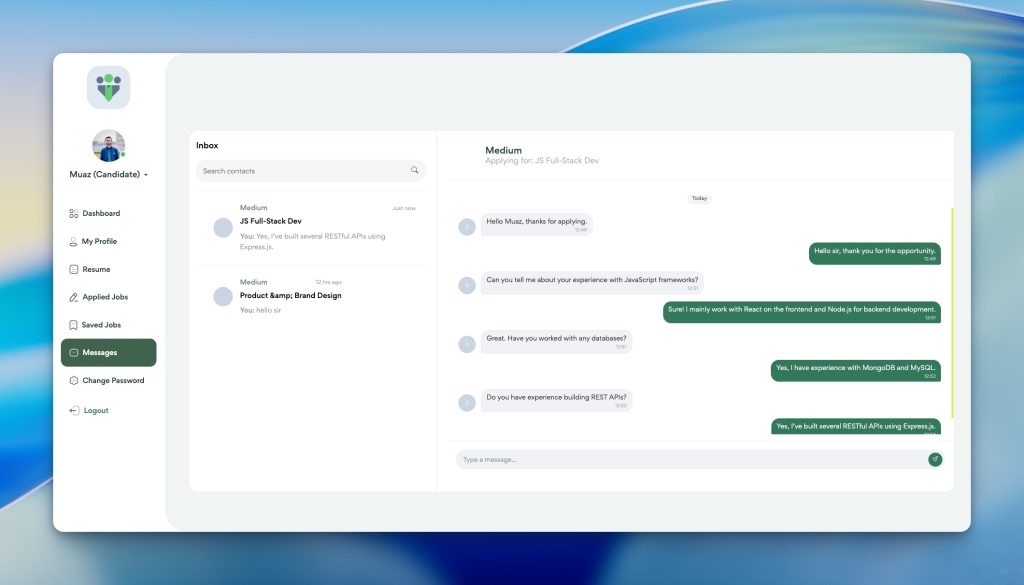 Communicate directly with employers through a built-in messaging system, manage conversations in one place, and respond quickly to inquiries, interview requests, or feedback to improve your chances of getting hired.