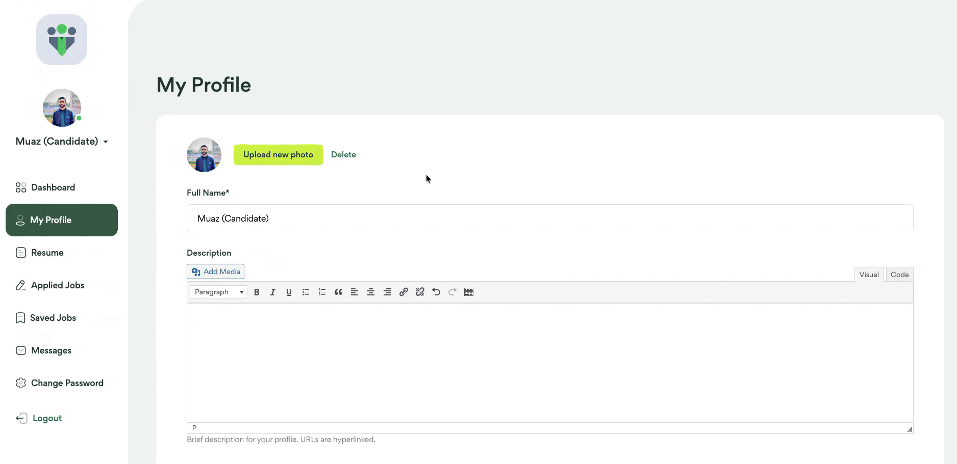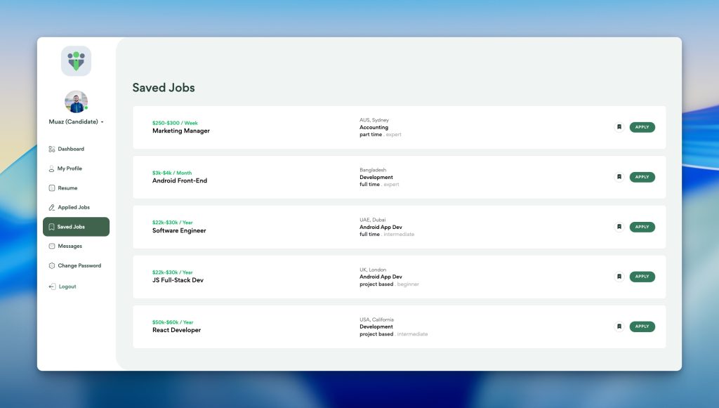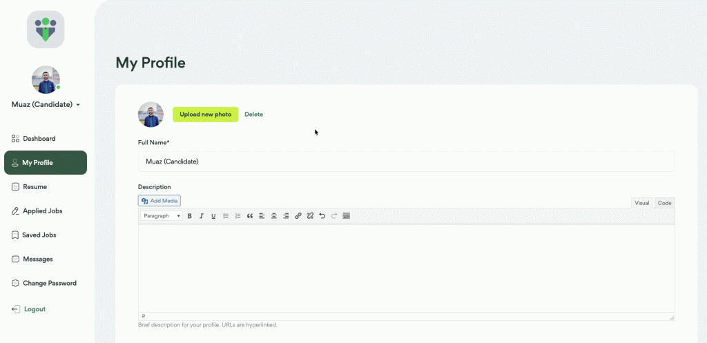 Create and manage your personal profile with essential details, social links, and professional bio, allowing you to present a strong identity to employers and improve your chances of getting noticed and hired faster.